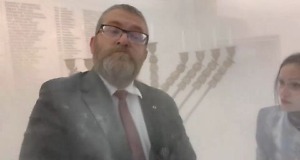 Polsk parlamentsmedlem gasset menora med brannslukningsapparat