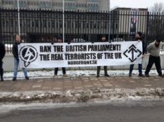 På lørdag gjennomførte svenske Rede 1 i Den nordiske Motstandsbevegelsen en protestaksjon utenfor den britiske ambassaden i Stockholm, dette for å markere mot det britiske regimets terrorstempling av National Action og nylig innførte pro-sionistiske lovgivning.