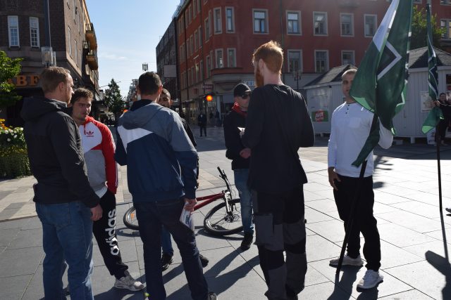 Resultatet ble flere diskusjoner, flere utdelte flyveblader, flere som hørte talen, flere som så våre symboler og flere som tok del av vårt budskap. Mange var ivrige etter å diskutere alle problemene som flerkulturen skaper i byen og de takket oss for vårt nærvær.