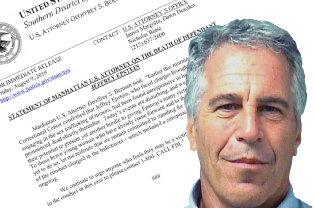 Daværende føderale aktor for Manhattan, Geoffrey S. Berman, skriver i dokumentet: «Tidlig i morges bekreftet Metropolitan Correctional Center på Manhattan at Jeffrey Epstein, som sto tiltalt for seksuelle overgrep og menneskehandel med mindreårige, ble funnet livløs i sin celle og erklært død kort tid etter».