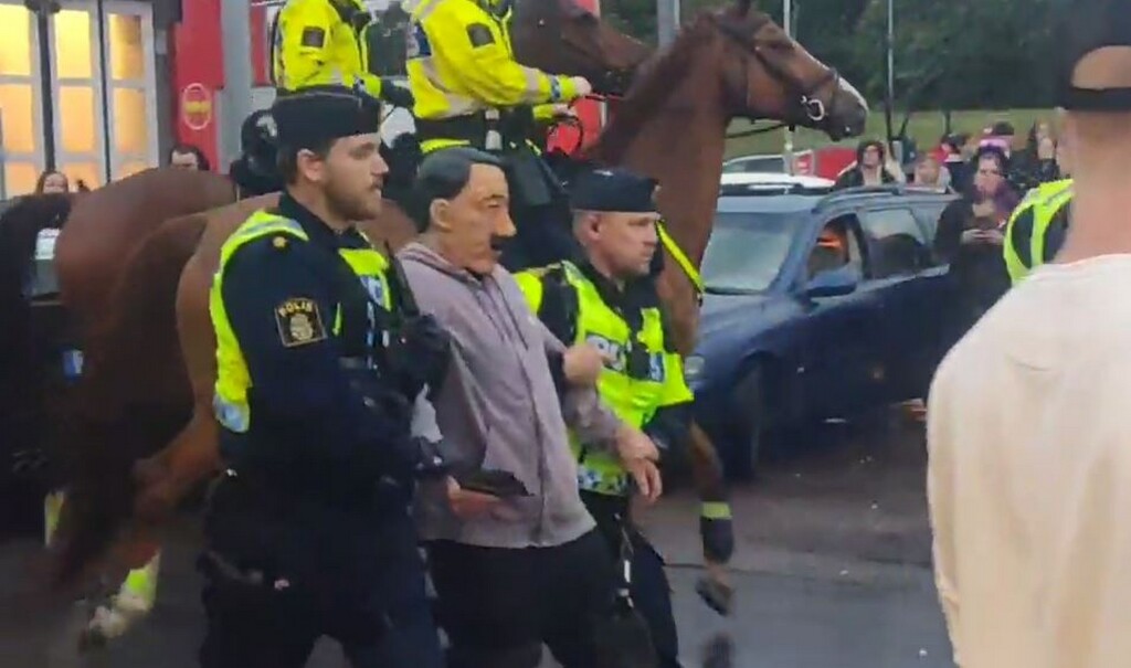 Politiet holdt først avstand, men mot kvelden dukket det plutselig opp en mann med maske som lignet Adolf Hitler. Hitler-mannen ble raskt populær blant de unge på stedet, som begynte å spille nasjonal musikk fra bilene sine, gjøre nordiske hilsener og ta selfies med Hitler.