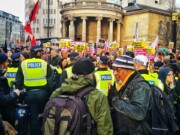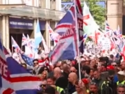 Tommy Robinsons snakket om nasjonal kulturell revolusjon, motdemonstranter snakket om "nasjonalisters hat" og innvandrernes "berikelse" av nasjonen. Da politiet straks forsøkte å stoppe strømmen fra ruten demonstrasjonen hadde vokst seg ut av, brøt det ut opptøyer.
