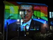 En video har blitt publisert på Twitter hvor budskap projiseres på Tyrkias ambassade i Stockholm. Mangel på ytringsfrihet og LHBTQ+-rettigheter i Tyrkia oppgis i beskrivelsen være hovedårsakene.