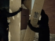 Aktivister fra Pohjanvartio har stengt inn Lenin-statuen i Turku i en boks.