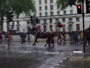 Black Lives Matter-banditter kastet sykler og andre gjenstander på det ridende politiets hester i opptøyene i London. En politikvinne ble kastet av sin hest og slått bevisstløs.