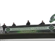 Aktivister fra Den nordiske motstandsbevegelsen i Danmark gjennomførte lørdag en banneraksjon fra en motorveibro i nærheten av Århus.