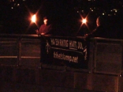 Motstandsmenn reiste inn til sentrale Stavanger og hang opp 15 store plakater. Aksjonen foregikk uten problemer.