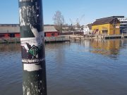 I overkant av femti klistremerker har blitt hengt opp på Sola. Aksjonen foregikk uten problemer.