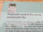 Rede 4 har hengt opp klistremerker i området rundt Hegra festning i Stjørdal.