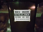 Medlemmer fra Rede 3 har hengt opp klistremerker sentralt i Åsane, Bergen.