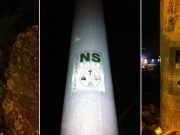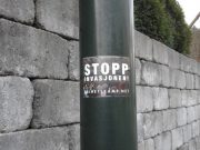 Kampgruppe 301 har nylig hengt opp klistremerker i Godvik i Bergen.