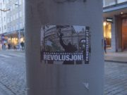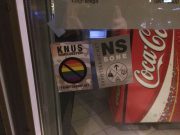Kampgruppe 401 har nylig hengt opp klistremerker i Kristiansund sentrum.