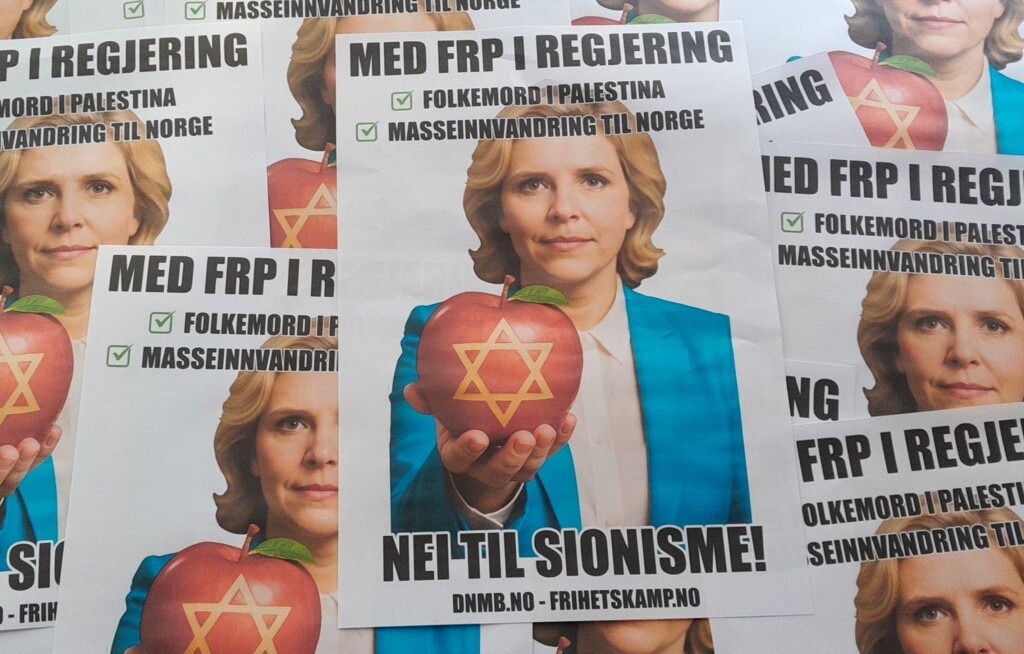 ANTI-SIONISME Den nordiske motstandsbevegelsen gjennomførte lørdag – i forkant av valgdagen – en aksjon i Oslo sentrum, rettet mot det sionistiske liberalkonservative partiet FrP.