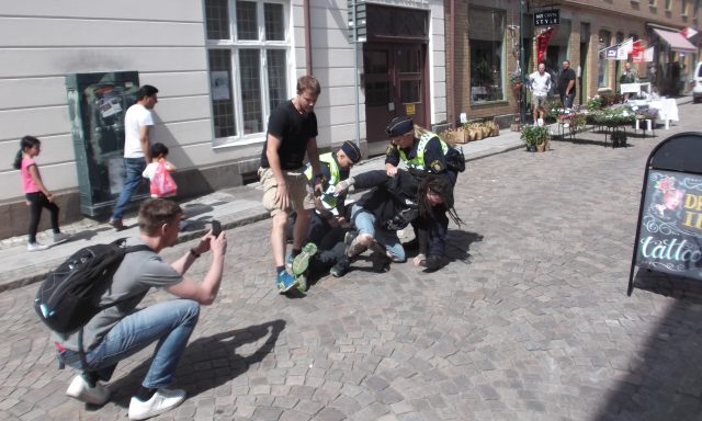 KAMP Motstandsbevegelsens svenske Rede 2 besøkte Potetfestivalen i Allingsås, hvor politiet beslagla NTVs filmkameraer etter at en røding forsøkte å angripe aktivistene.