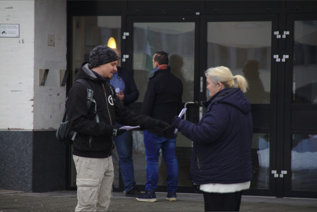 MOTSTANDSBEVEGELSEN Aktivister fra Motstandsbevegelsen gjennomførte lørdag offentlige aksjoner i både Tønsberg og Sandefjord.