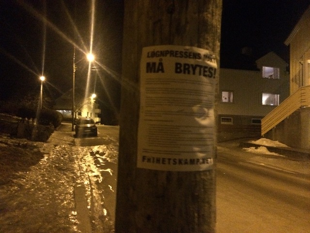Hjem Kamprapport Plakatoppsetting i Kristiansund Kamprapport Plakatoppsetting i Kristiansund Av Redaksjonen - 26. januar 2018 Kampgruppe 401 har nylig stiftet opp flyvebladet «Løgnpressens makt må brytes» på strategiske steder rundt om i Kristiansund kommune.