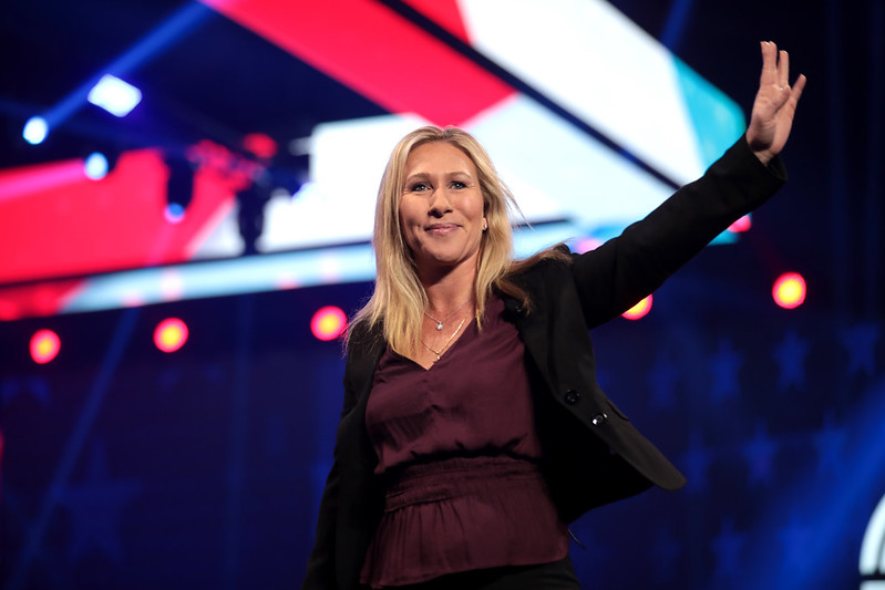 Det republikanske medlemmet av Representantenes hus, Marjorie Taylor Greene, har i mange tilfeller fulgt den populistiske politikken som president Donald Trump lovet under valgkampen. Hun har vært kritisk til USAs støtte til Israel og Ukraina, og hun har krevd at etterforskningen av Jeffrey Epstein skal offentliggjøres.