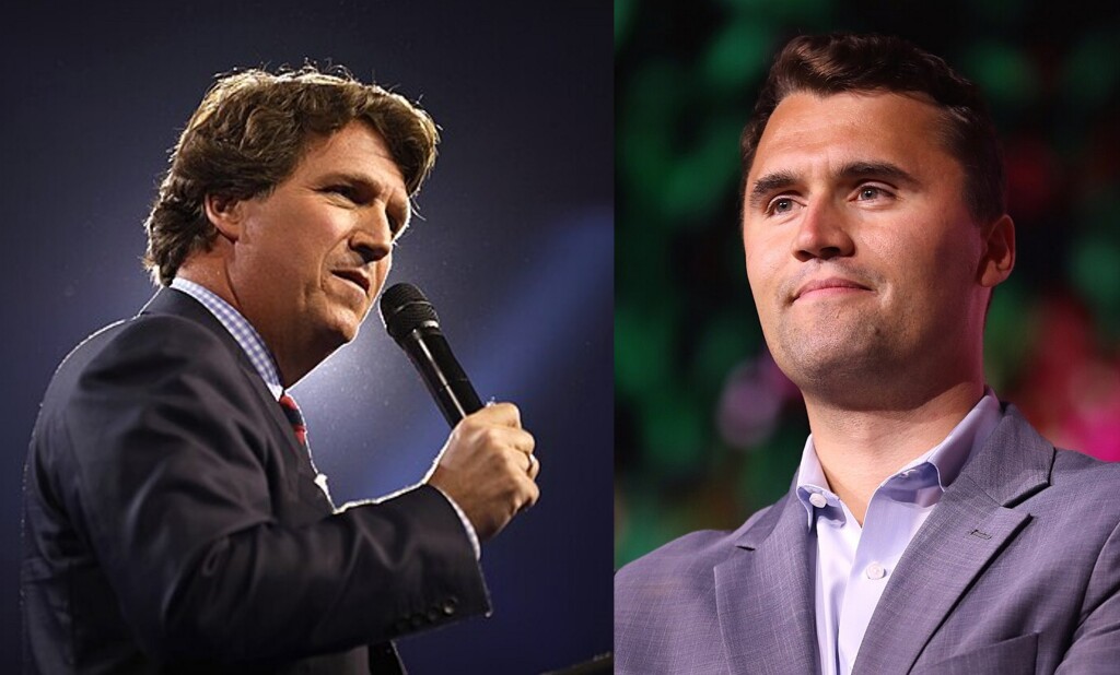Tucker Carlson (t.v.) og Charlie Kirk (t.h.).